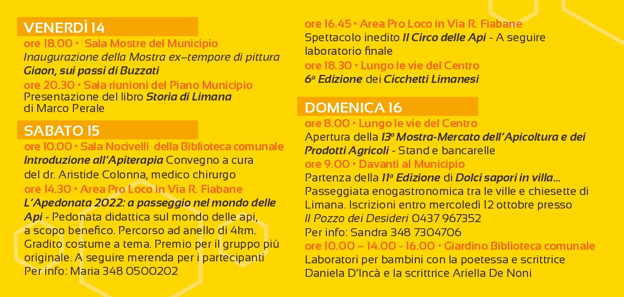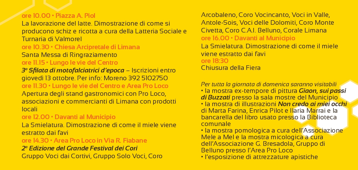 La Festa del miele si avvicina e per questa tredicesima edizione le vie di Limana si riempiranno di bancarelle, dimostrazioni e intrattenimenti.